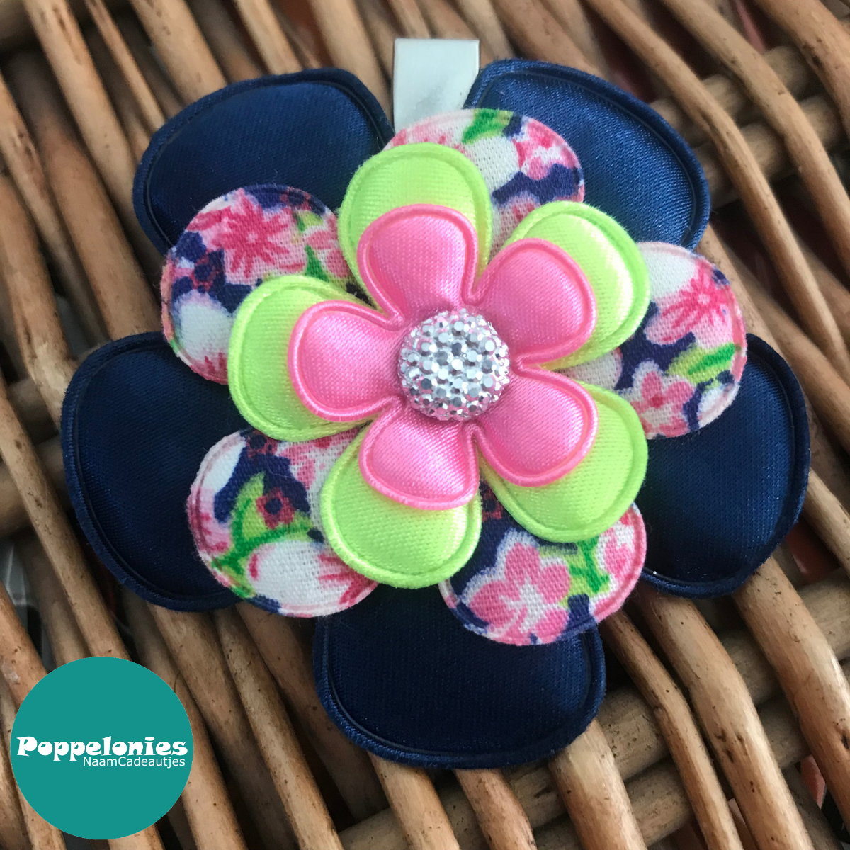 Deze prachtige bloem met alligator speld is handgemaakt en helemaal uniek!
