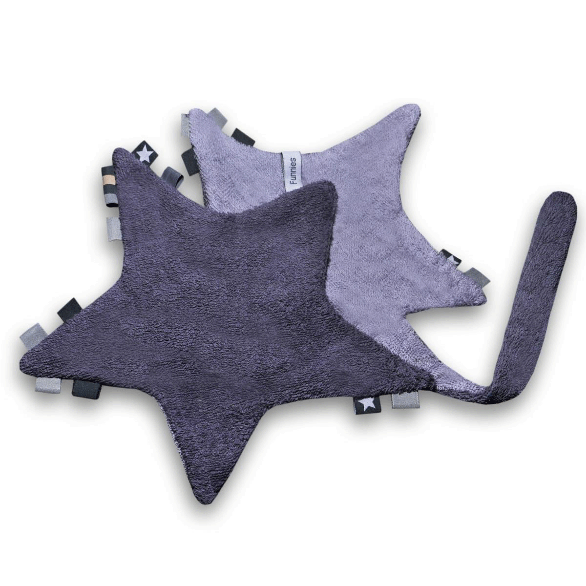 Aan dit labeldoekje van het merk Funnies kun je een speen vast maken. Dit doe je door het speentje om de strook te schuiven en daarna een grote knoop te leggen, zodat de speen er niet meer afschuift. De ster is gemaakt van badstof en ideaal in gebruik. Je kindje kan lekker spelen met de labeltjes / knoop en lekker tuten op zijn speentje. Daarnaast is de speen ook gemakkelijk terug te vinden! De ster heeft aan beide kanten een andere kleur: grijs en licht grijs